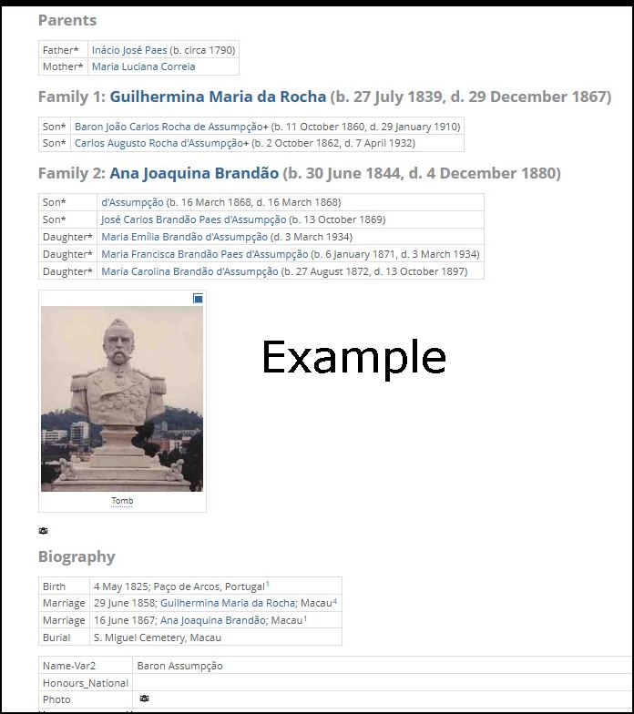 Familias Macaenses 2nd ed., Vols I-VI, ISBN 978-99965-886-1-7 Albergue SCM e Bambu – Sociedade e Artes Limitada, Macau, Março 2017. The definitive genealogical work on people of Macanese descent, the foundation of the database for the restricted Macanese Families website, supplemented by contributions from hundreds of Macanese families, with records of over 60,000 people. Access may be given to individuals with a Portuguese ancestor from Macau. Registration and login forms are at macaneselibrary.org