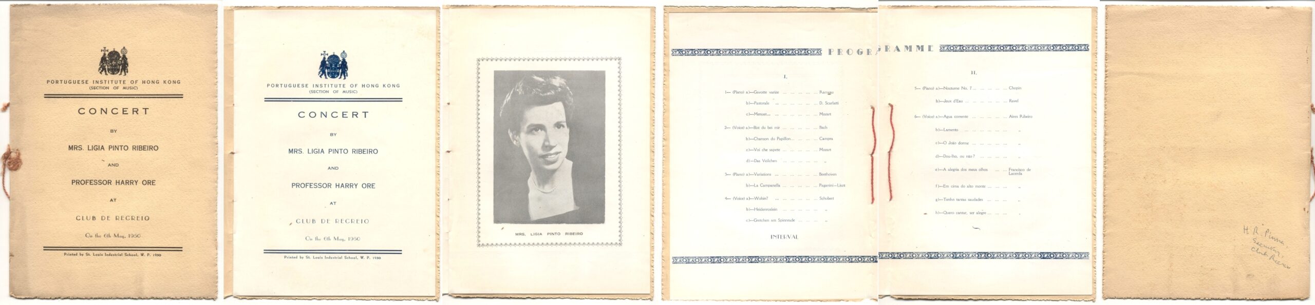 Programme of Concert by Ligia Pinto Ribeiro and Prof Harry Ore at Clube de Recreio, 6 May 1950
