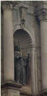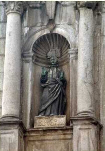 The artisans who worked on the church were Japanese Christian refugees from Nagasaki, fleeing religious persecution under the Tokugawa regime. Its architect was an Italian Jesuit priest, Father Carlo Spinola (1564–1622). It seems unlikely, as some articles claim, that he oversaw the construction of the church, as he spent most of his time as a missionary in Japan, operating underground to escape persecution for four years, until he was captured and martyred, 22 years before the church’s completion. Most likely, the facade decorations were done under the supervision of another Italian Jesuit, Giovanni Nicolao da Nola.
