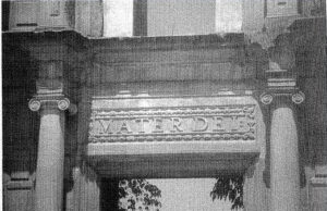 The church, school, and library were destroyed by a disastrous fire during a typhoon in 1835, leaving only the granite facade and stone steps.