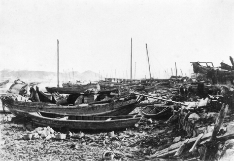 Most of the 2,000 vessels lost were fishing craft, and the Chinese boat people were all but wiped out. Larger vessels were lost too. A Portuguese gunboat, Principe Carlos, was landed in a paddy field 14 miles away to the south 3, and Teixeira(7) names three other ships that were driven ashore or suffered damage in the Porto Interior.