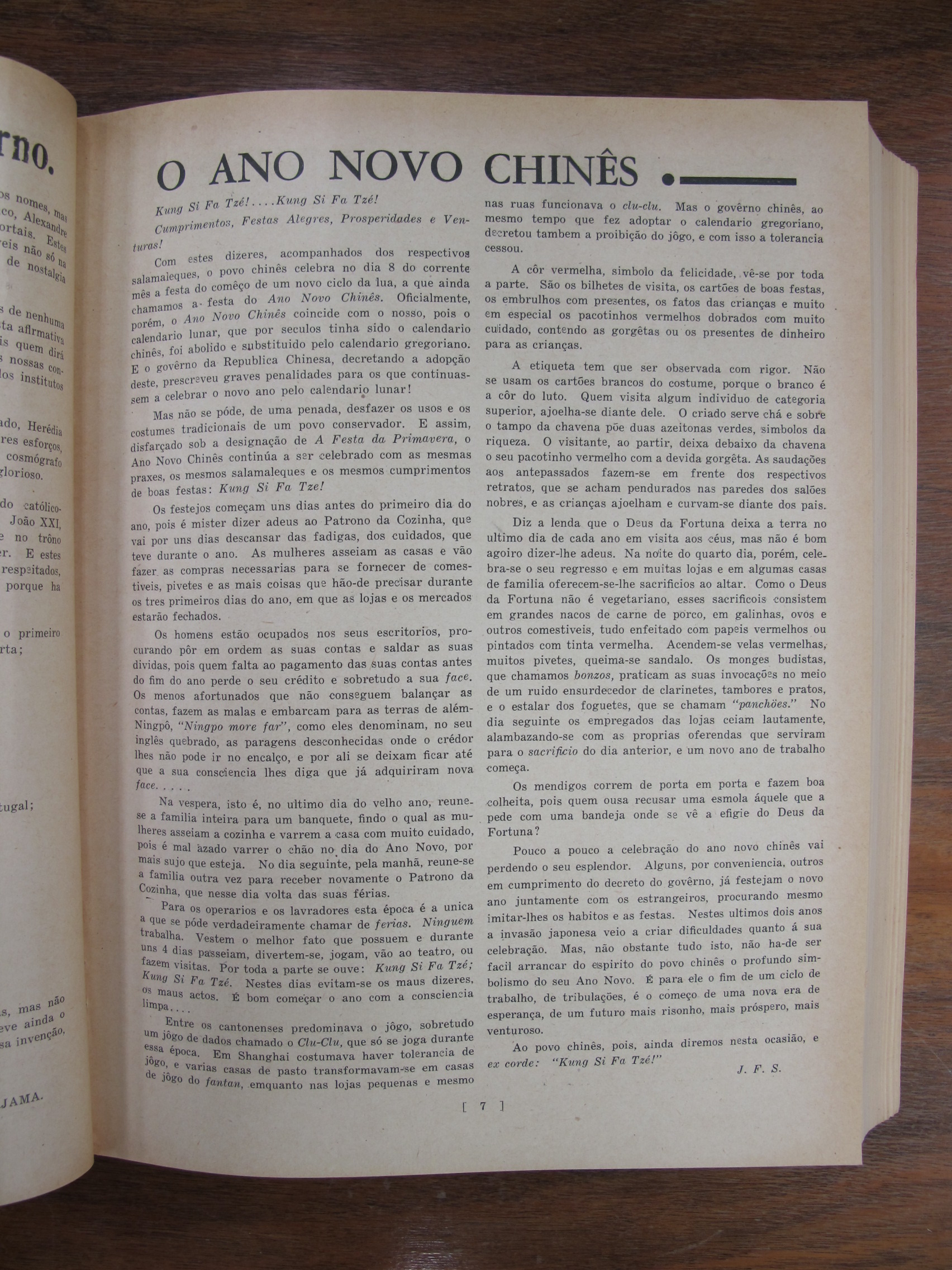 O Ano Novo Chinês Article on Chinese New Year by JFS