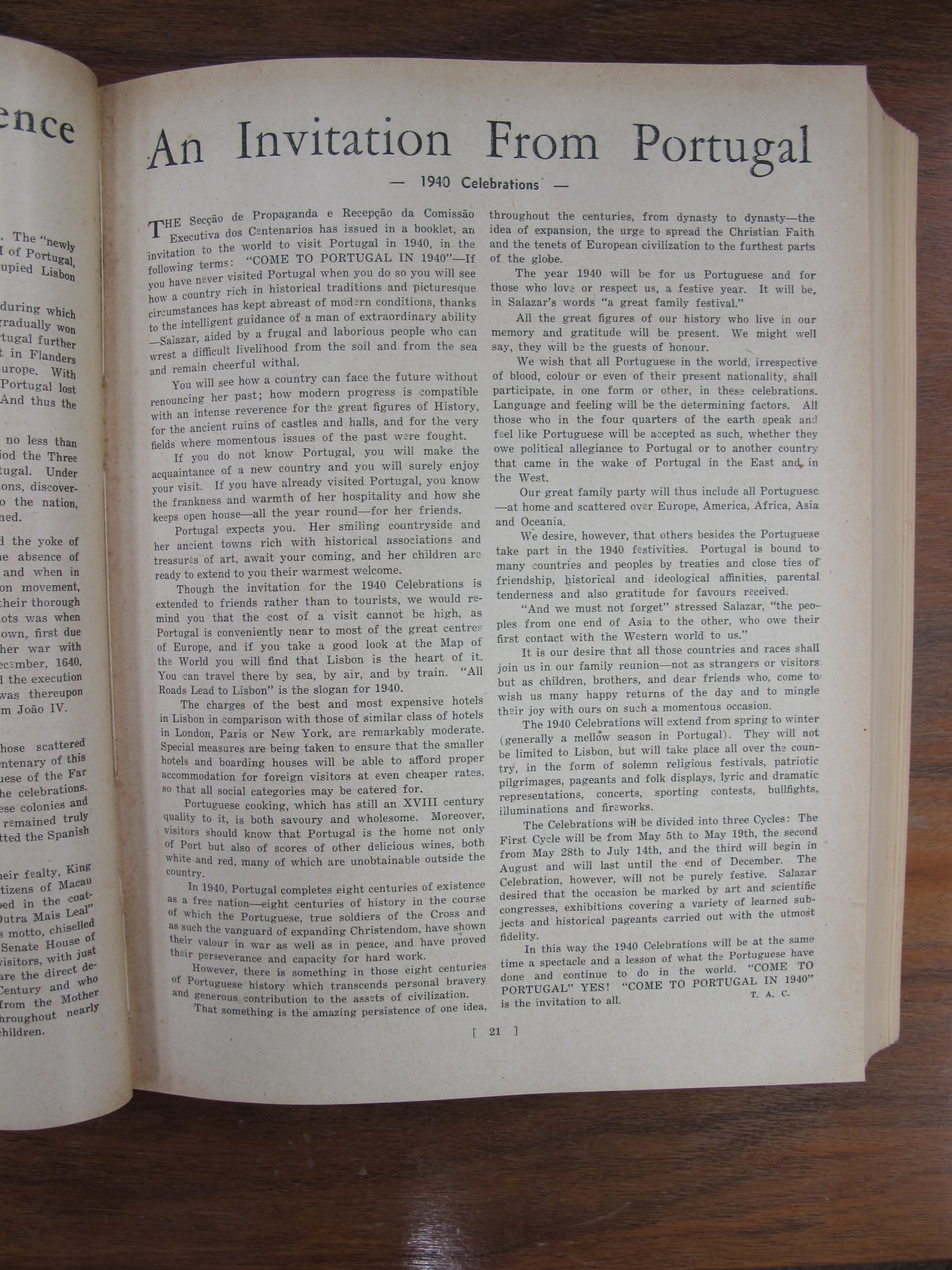 An Invitation from Portugal by TAC – Celebrations in Portugal in 1940