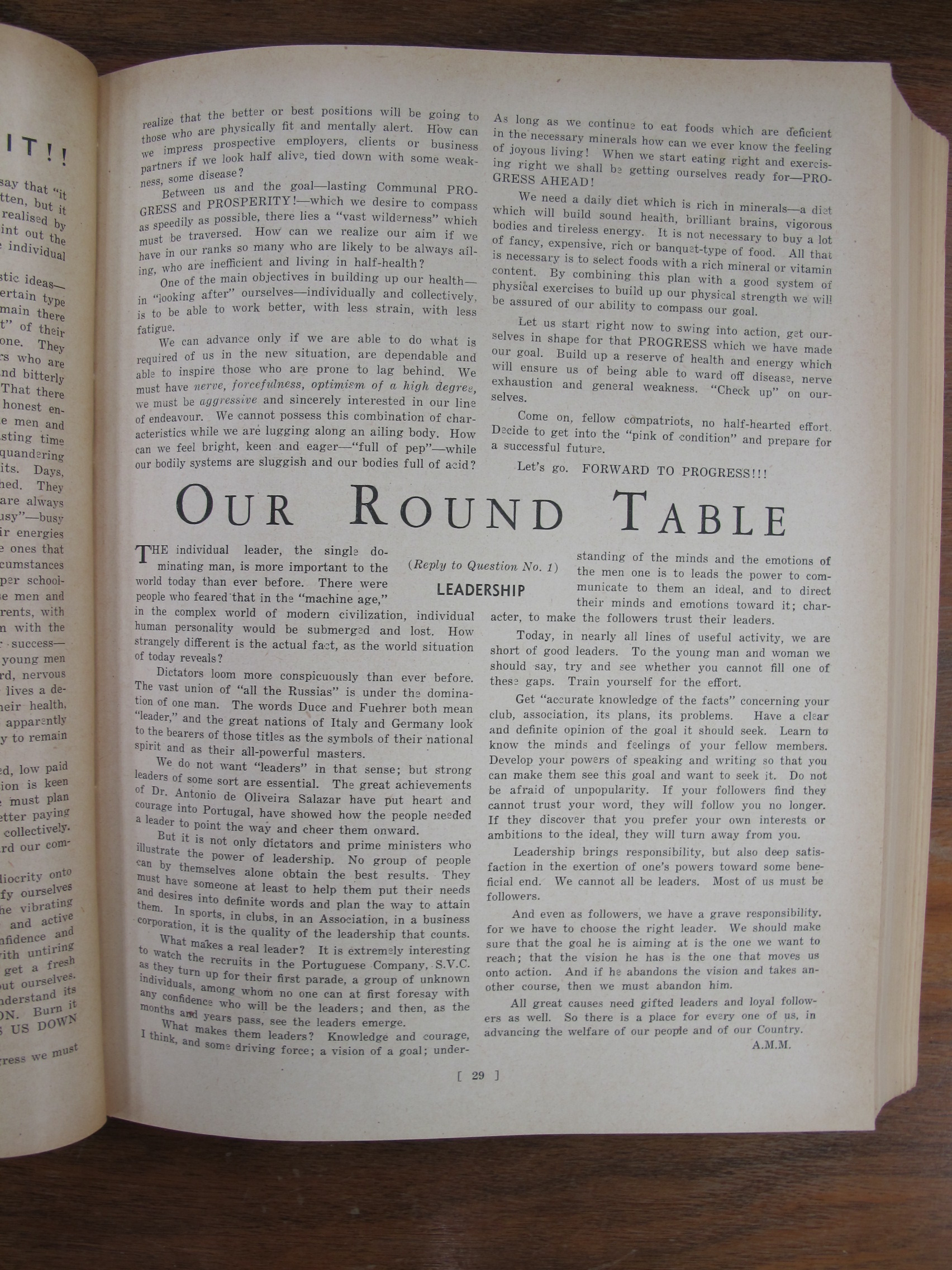 cont.; Our Round Table – Article on Leadership by AMM