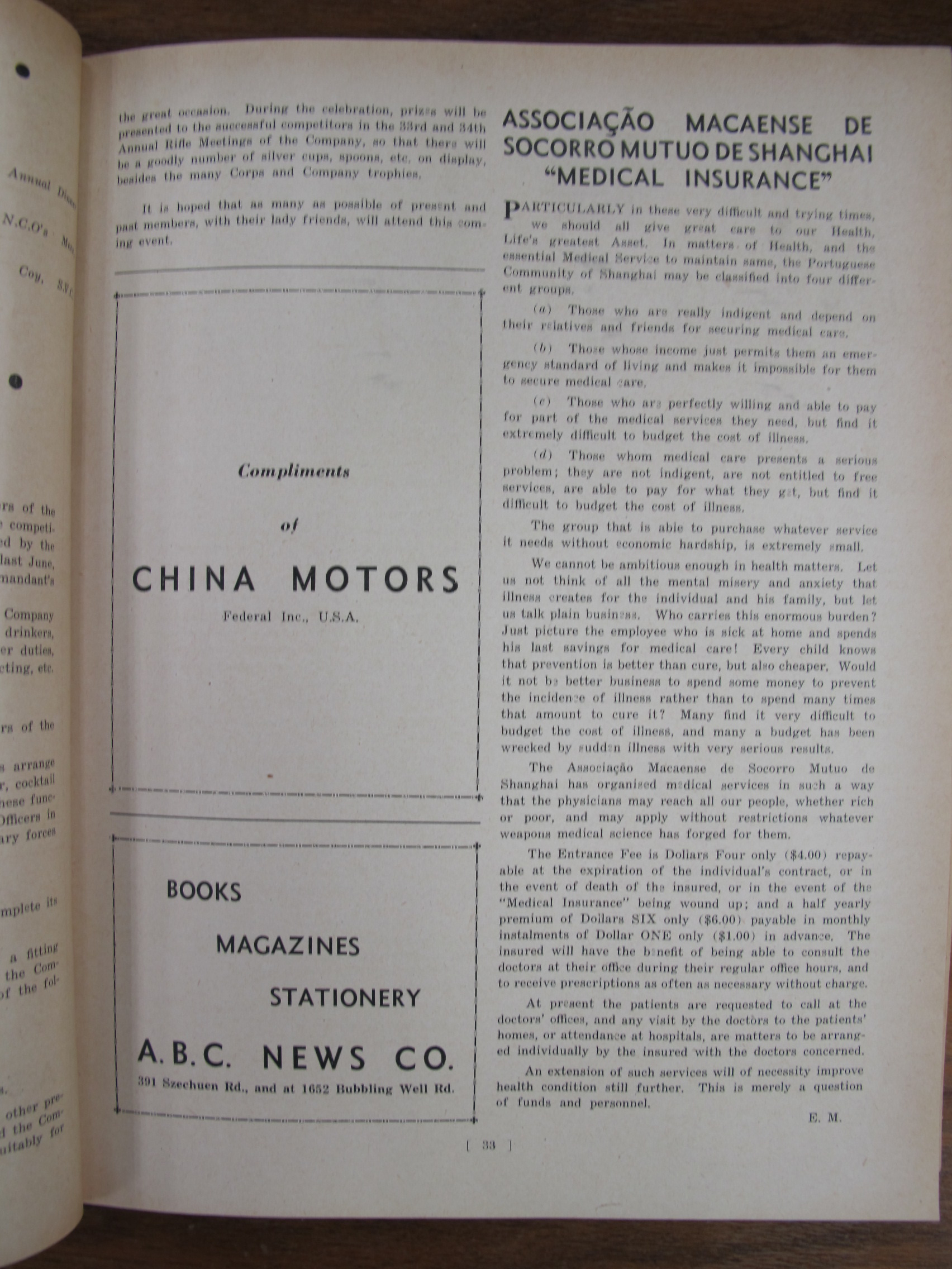 Associação Macaense de Socorro Mutuo de Shanghai "Medical Insurance" by EM – Medical services for all Macaenses