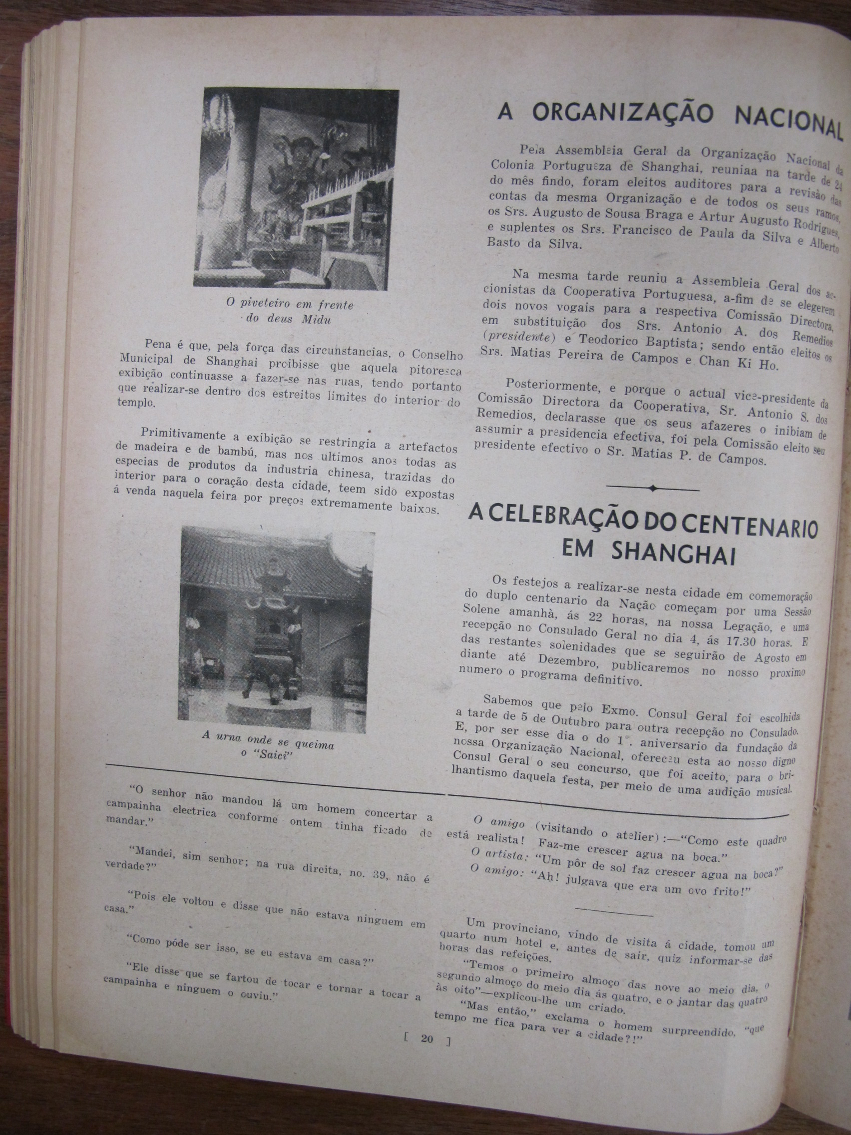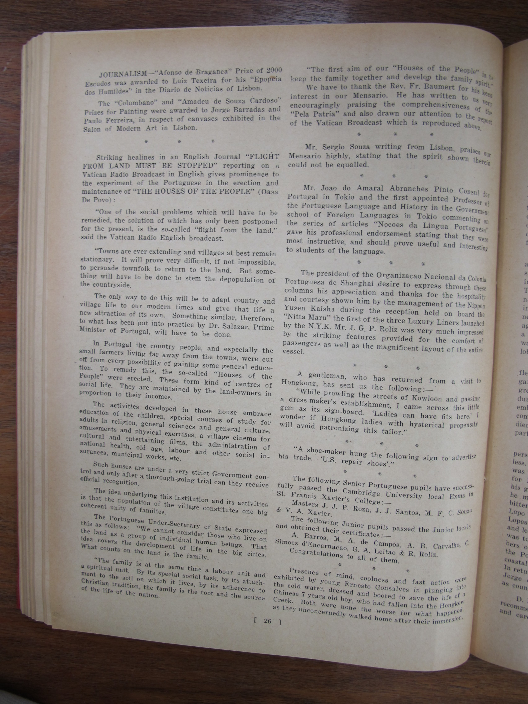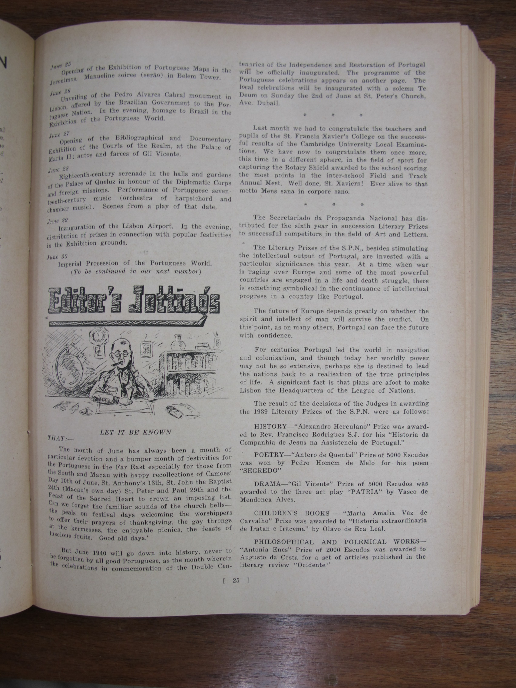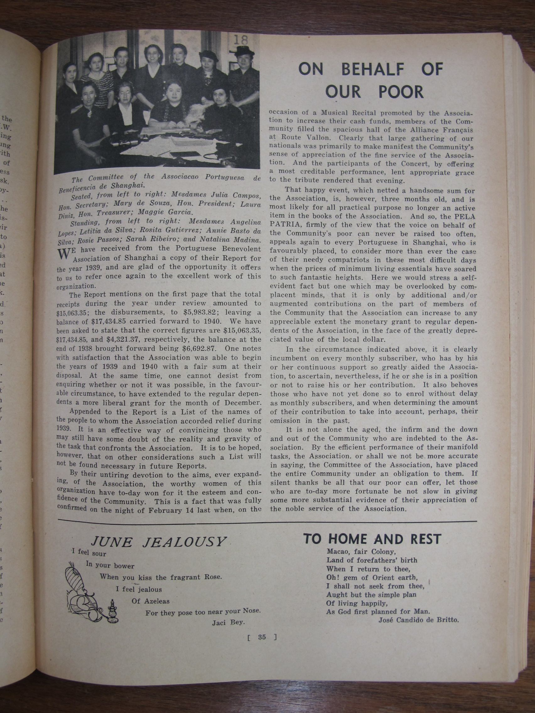 A Nossa Carteira (Our Desk), mentioning José Francisco Teixeira, Alves Lico, JF Chagas, Joaquim Prudêncio Gonçalves Roliz, JM Diniz, AM Souza, CM Silva, EJ da Silva, JM Tavares, Mário Augusto Ferras, Antero Augusto Marques Guterres da Silva, Carlos de Aqino, Henrique de Aquino, Jorge Colalço, A Xavier, Bonifácio Estevão Pintos, Gilberto Braz Collaço, J Remedios, Bellas Barros, Genoveva Colalço, Virginia Maher, Fábia Esperança Colaço Roliz, Maria Amélia Tiaga Colaço Roliz, Glória Maria Danenberg, Margarida Colalço, Lucila Colalço, Berta Colalço, Mildred Costa, Elvira Antónia "Elvie" Correa[Correia], Branda Sena, Lorna de Azevedo, Dolores Botelho, JF Chagas, AS Braga, CM Basto da Silva, AM Gutierrez, Giles Deitz, A Maher, Major Manuel Francisco Read Leitão, JP de Campos, FM Machado, A Portaria, Fernando Augusto Read Leitão, AH Corveth, LAM Ozorio, LF Lopes, JMR Gutierrez, T Baptista, ECJ Pereira, A Diniz, Tito António de Carvalho, JM Diniz, S del Rivero, A Allemão, EJ da Silva, JA Remedios, VO Remedios, AA dos Remedios, FMF Gutierrez, PJ Barrera, AL Barrera, HA Ozorio, LM d'Almeida, MA Sequeira, Melita Figueiredo, Francisca Diniz, Natalina Medina, Lizzie Canavarro, Eleonora England, Leonora Carion, Leonora Passos, J Portaria, AL d'Aguiar, VB da Silva, A Oliveira, G Marques, C Diniz, Artur Leitão