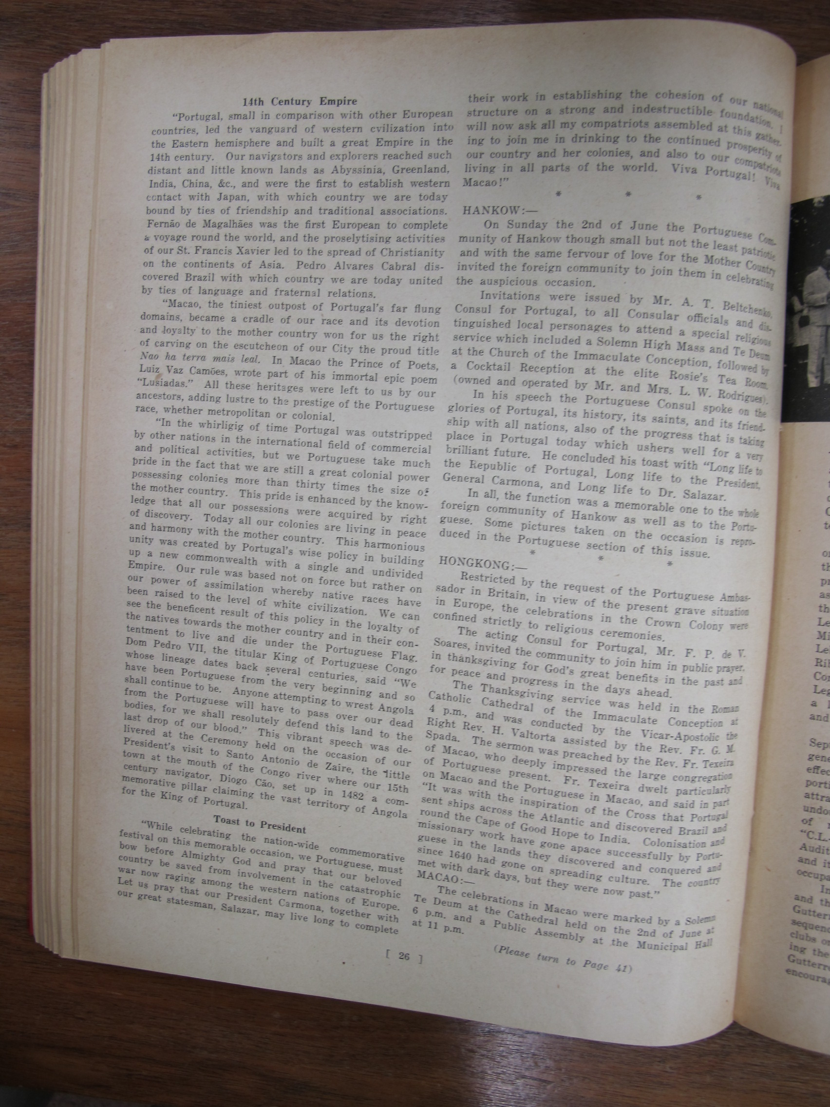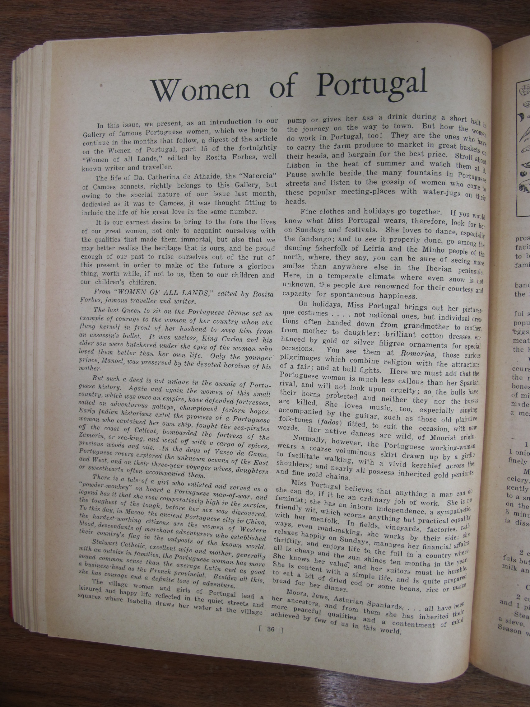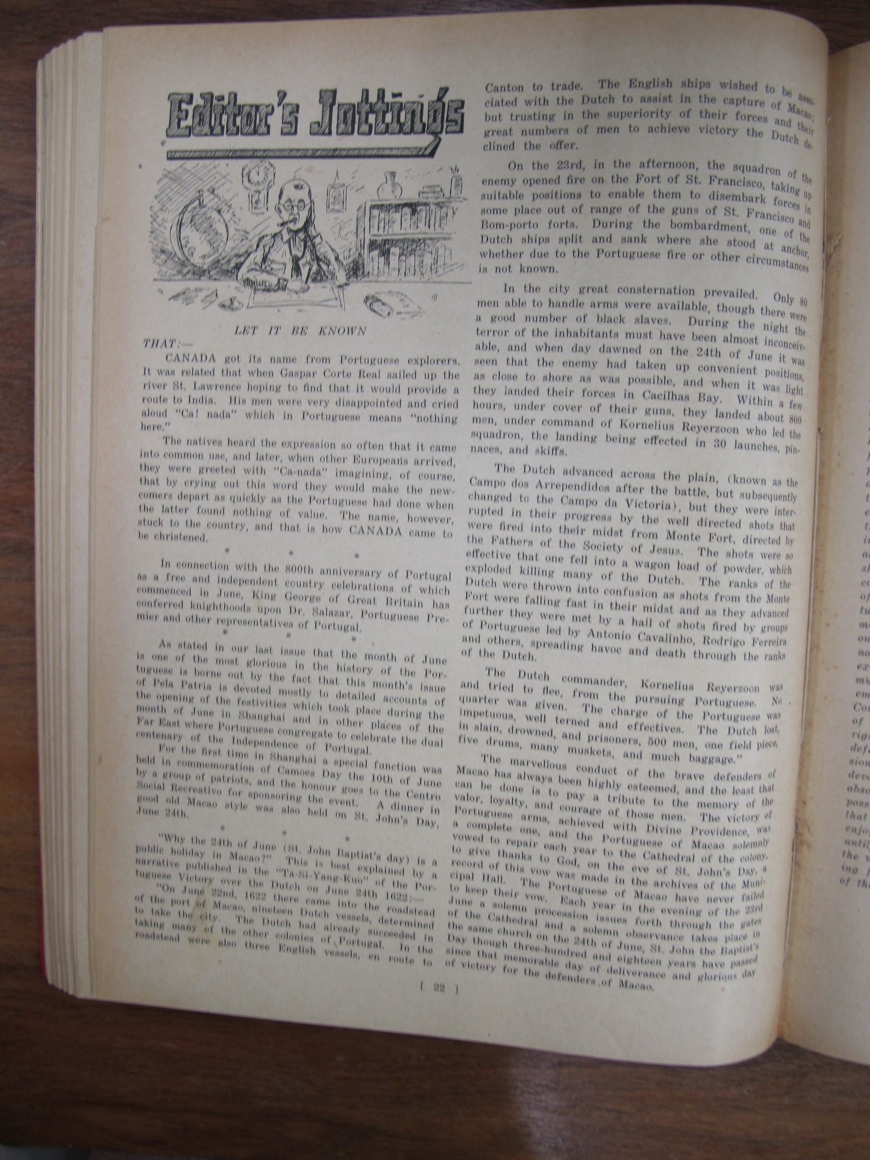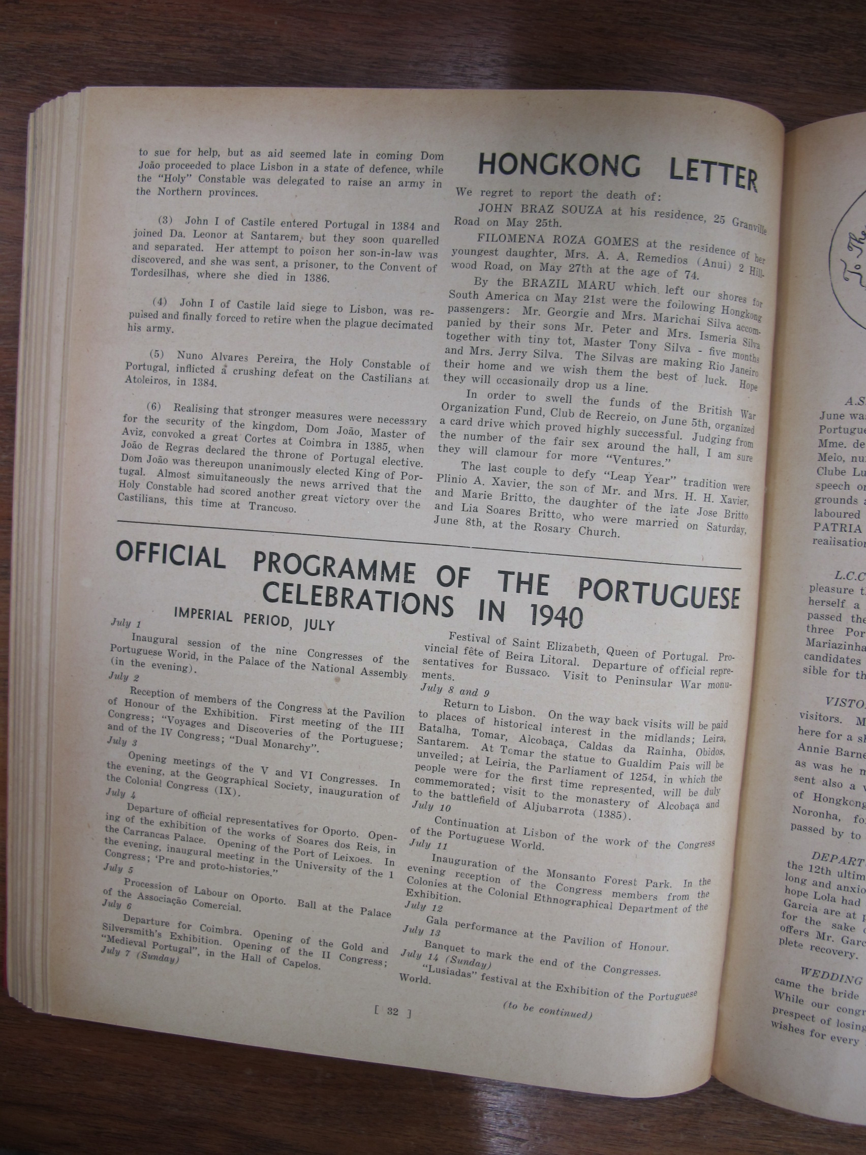 p33 To the Ladies mentioning Daniel Maria de Graça Gutteres, Mrs E Sweeney, Leonora da Roza, Mariazinha da Silva, Lyda Peterson, R. Silva-Netto, Annie Barnes Silva-Netto and her mother of Mrs Angelina Barnes, Christina Gutierrez, Mrs Victor Noronha, Miss Lola Motta and her sister Phyullis, EA Garcia. Announcing the marriage of Júlia Miriam "Juxie" de Oliveira and Andre Goenaga on 15 June; the departure to Louisville, Kentucky, of Bertha, daughter of Mr and Mrs Carlos Borromeu Jorge Lubeck, and mentioning her sister Berna who will enter the Orders of the Sisters of Loretto at the Foot of the Cross. Mentioning Verna Myra dos Remédios, Mercia Barretto, Jaci Bey, Misses C Barradas, Patrícia Maria de Carvalho, Bernardette Marie Lubeck, V Maher, M Ozorio, G Sequeira, E Xavier. Poem by Jaci Bey
