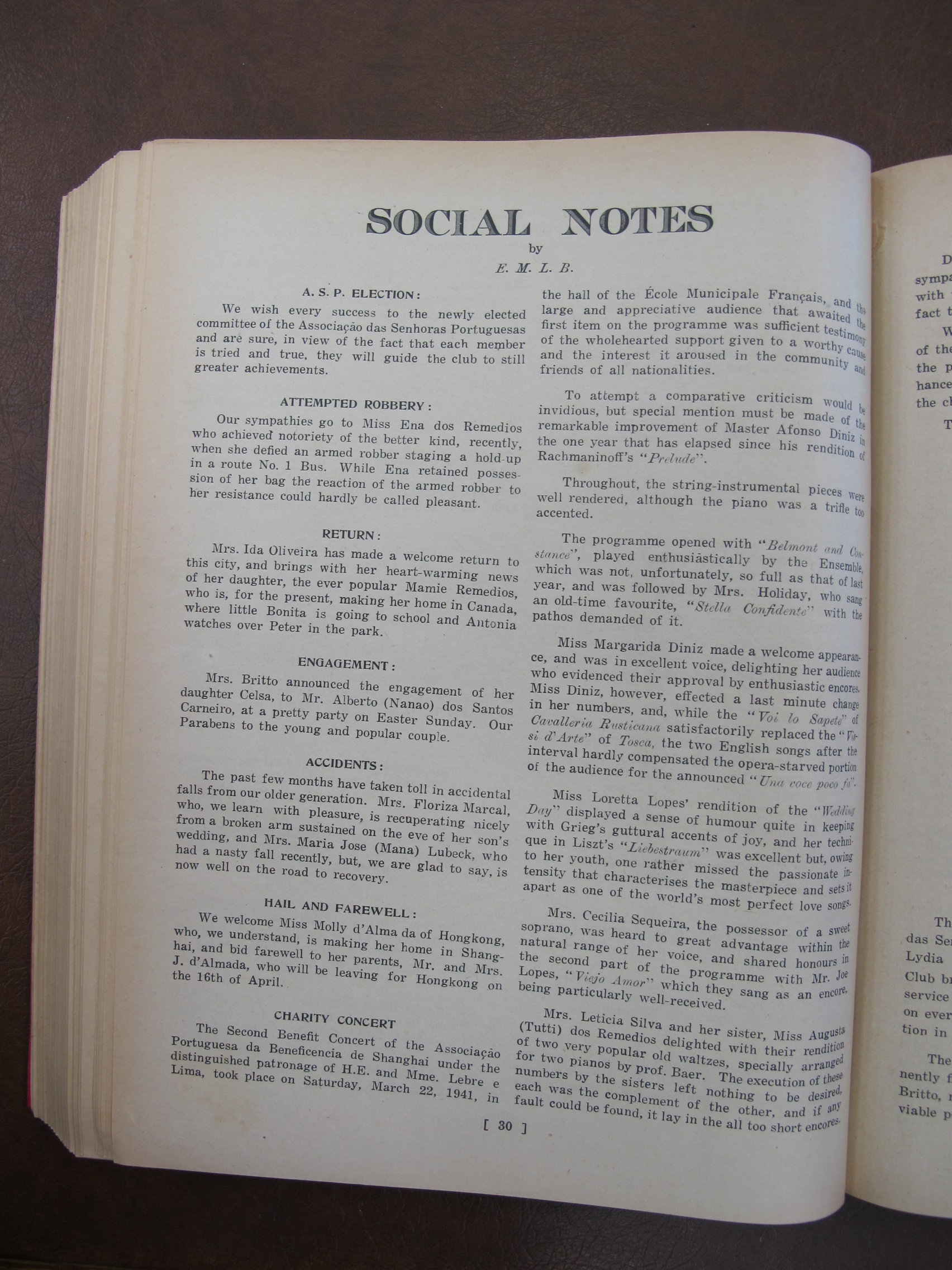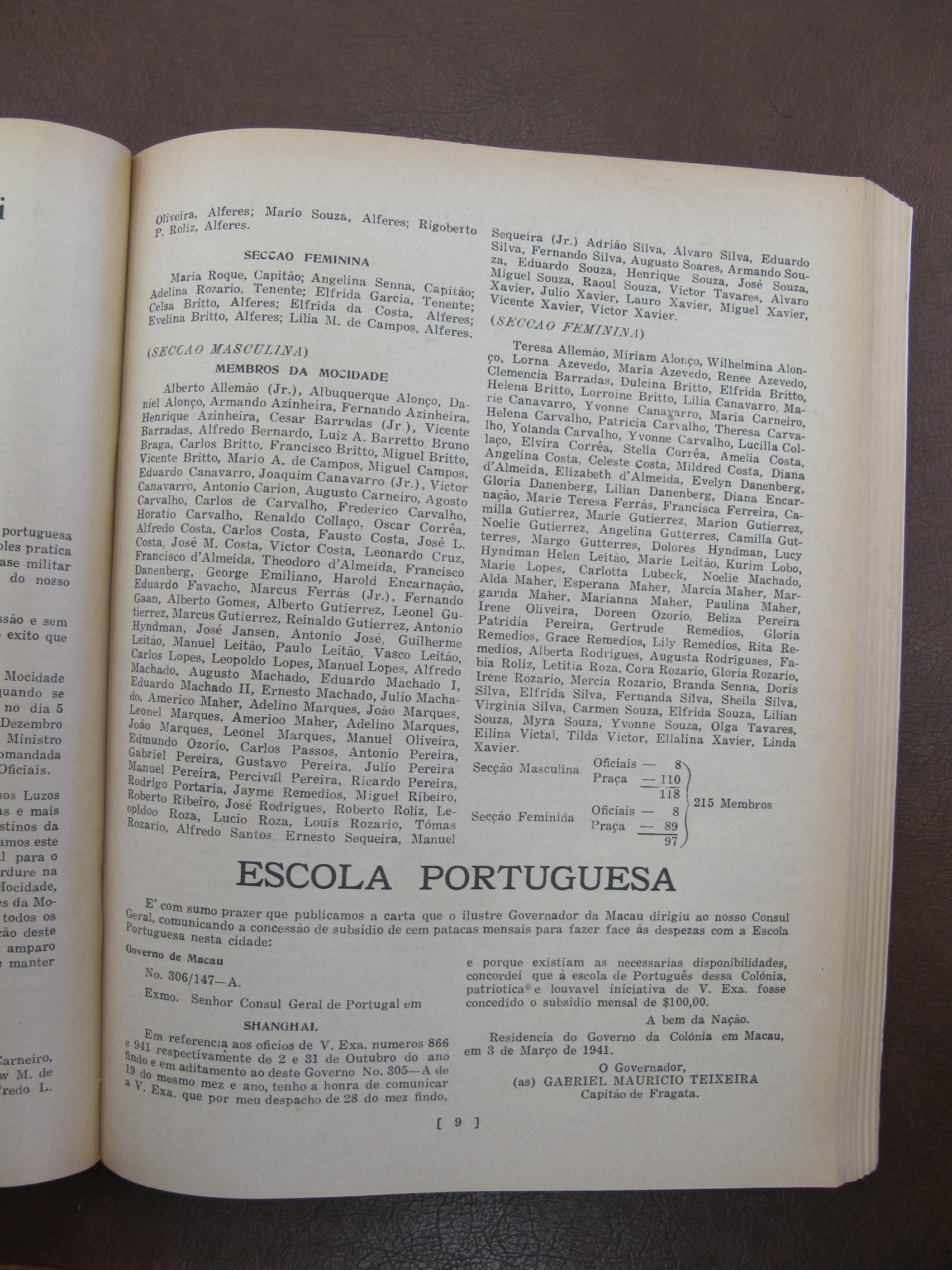 cont. mentioning Mario Souza, Rigoberto Paulo José Colaço Roliz, Maria Machado da Costa Roque, Angleina Senna, Adelina Rozario, Elfrida Ana de Figueiredo Garcia, Celsa Britto, Elfrida da Costa, Evelina Britto, Lilia M de Campos, Alberto Allemao (Jr), Albuquerque Alonco, Daniel Alonco, Armando Azinheira, Fernando Azinheira, Henrique Fernando Azinheira, Cesar Barradas (Jr), Vicente Barradas, Alfredo Bernardo, Luiz A Barretto, Bruno Braga, Carlos Britto, Francisco Britto, Miguel Britto, Eduardo Canavarro, Joaquim Maria da Costa Canavarro (Jr), Victor Carvalho, Carlos de Carvalho, Frederico Carvalho, Horatio Carvalho, [Renaldo] Reinaldo "Ronnie" Collaço, Oscar Correa, Alfredo Costa, Carlos Costa, Fausto José Maria da Costa, José L Costa, José M Costa, Victor Costa, Leonardo Cruz, Francisco d'Almeida, Theodoro d'Almeida, Francisco Danenberg, George Emiliano, Harold Encarnação, Eduardo Favacho, Marcus Ferrás (Jr), Fernando Gaan, Alberto Gomes, Alberto Gutierrez, Leonel Gutierrez, Marcus Gutierrez, Reinaldo Gutierrez, Antonio Hyndman, José Jansen, Antonio José, Guilherme Leitão, Major Manuel Francisco Read Leitão, Paulo Leitão, Vasco [Artur] Leitão, Artur [António] Leitão, Carlos Lopes, Leopoldo Lopes, Manuel Lopes, Alfredo Machado, Augusto José Machado, Eduardo Machado, Julio Machado, Americo Maher, Adelino Marques, Joao Marques, Leonel Marques, Manuel Oliveira, Edmundo Ozorio, Carlos Passos, Antonio Pereira, Gabriel Pereira, Gustavo Pereira, Julio Pereira, Manuel Pereira, Percival Pereira, Ricardo Alberto Pereira, Rodrigo Portaria, Jayme Remedios, Miguel Ribeiro, Roberto Ribeiro, José Rodrigues, Roberto Roliz, Leopoldo Roza, Lucio Roza, Louis Rozario, Tomas Rozario, Alfredo Santos, Ernesto Sequeira, Manuel Sequeira (Jr), Adriao Silva, Alvaro Silva, Eduardo Silva, Fernando Silva, Augusto Soares, Armando Souza, Eduardo Souza, Henrique Souza, José Souza, Miguel Souza, Raoul Souza, Victor Tavares, Alvaro Xavier, Julio Xavier, Lauro Xavier, Miguel Armando de Carvalho Stuart Xavier, Vicente Xavier, Victor Xavier, Teresa Allemao, Miriam Alonco, Wilhelmina Alonco, Lorna Azevedo, Maria Azevedo, Renee Azevedo, Clemencia Barradas, Dulcina Britto, Elfrida Britto, Helena Britto, Lorraine Britto, Lilia Canavarro, Maria Luísa Juster Canavarro, Ivone Maria Juster "Yvonne" Canavarro, Maria Carneiro, Helena Carvalho, Paricia Carvalho, Theresa Carvalho, Yolanda Carvalho, Yvonne Carvalho, Lucilla Collaço, Elvira Antónia "Elvie" Correa, Stella Correa, Amelia Costa, Angelina Costa, Celeste Costa, Mildred Costa, Diana d'Almeida, Elizabeth d'Almeida, Evelyn Danenberg, Glória Maria Danenberg, Lilian Danenberg, Diana Encarnação, Marie Teresa Ferrás, Francisca Ferreira, Camilla Gutierrez, Marie Gutierrez, Marion Gutierrez, Noelie Gutierrez, Angelina Gutterres, Camilla Gutterres, Margo Gutterres, Dolores Hyndman, Lucy Hyndman, Helen Leitão, Marie Leitão, Kurim Lobo, Marie Lopes, Carlotta Maria Lubeck, Noelie Machado, Alda Maher, Esperana Maher, Marcia Maher, Margarida Maher, Marianna Maher, Paulina Maher, Irene Oliveira, Doreen Ozorio, Beliza Pereira, Patricia Pereira, Gertrude Remedios, Gloria Remedios, Grace Remedios, Lily Remedios, Rita Remedios, Alberta Rodrigues, Augusta Rodrigues, Fábia Esperança Colaço Roliz, Letitia Roza, Cora Rozario, Gloria Rozario, Irene Rozario, Mercia Rozario, Branda Senna, Doris Silva, Elfrida Silva, Fernanda Silva, Sheila Silva, Virginia Silva, Carmen Souza, Elfrida Souza, Lilian Souza, Myra Souza, Yvonne Souza, Olga Tavares, Eilina Victal, Tilda Victor, Ellalina Xavier, Linda Xavier