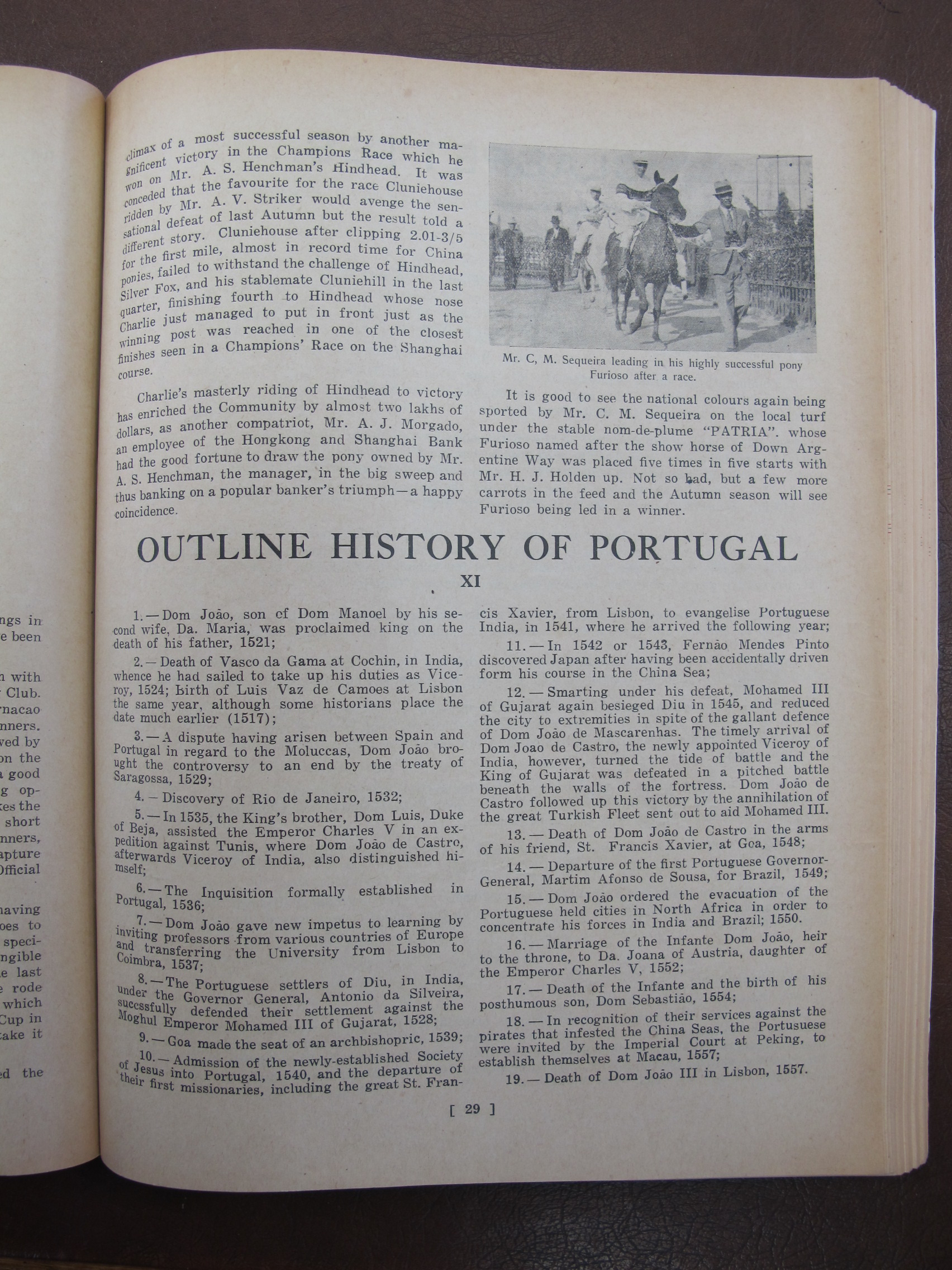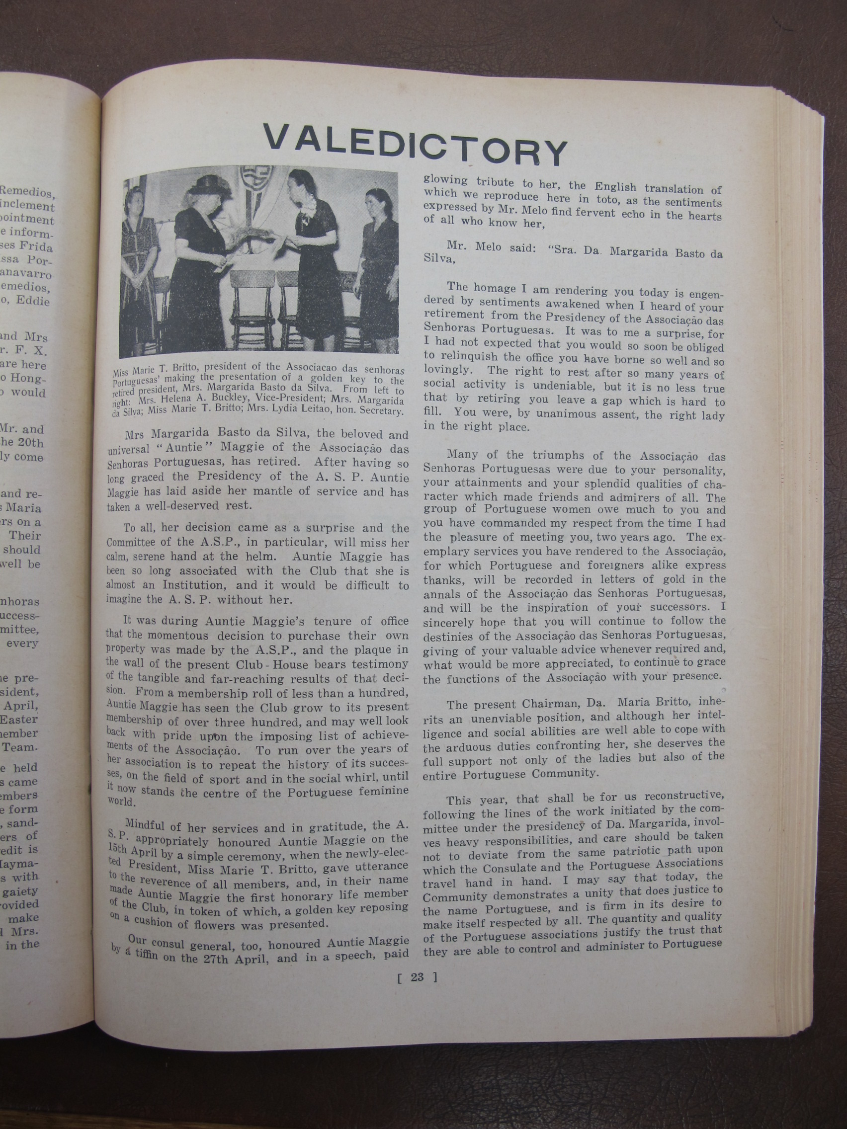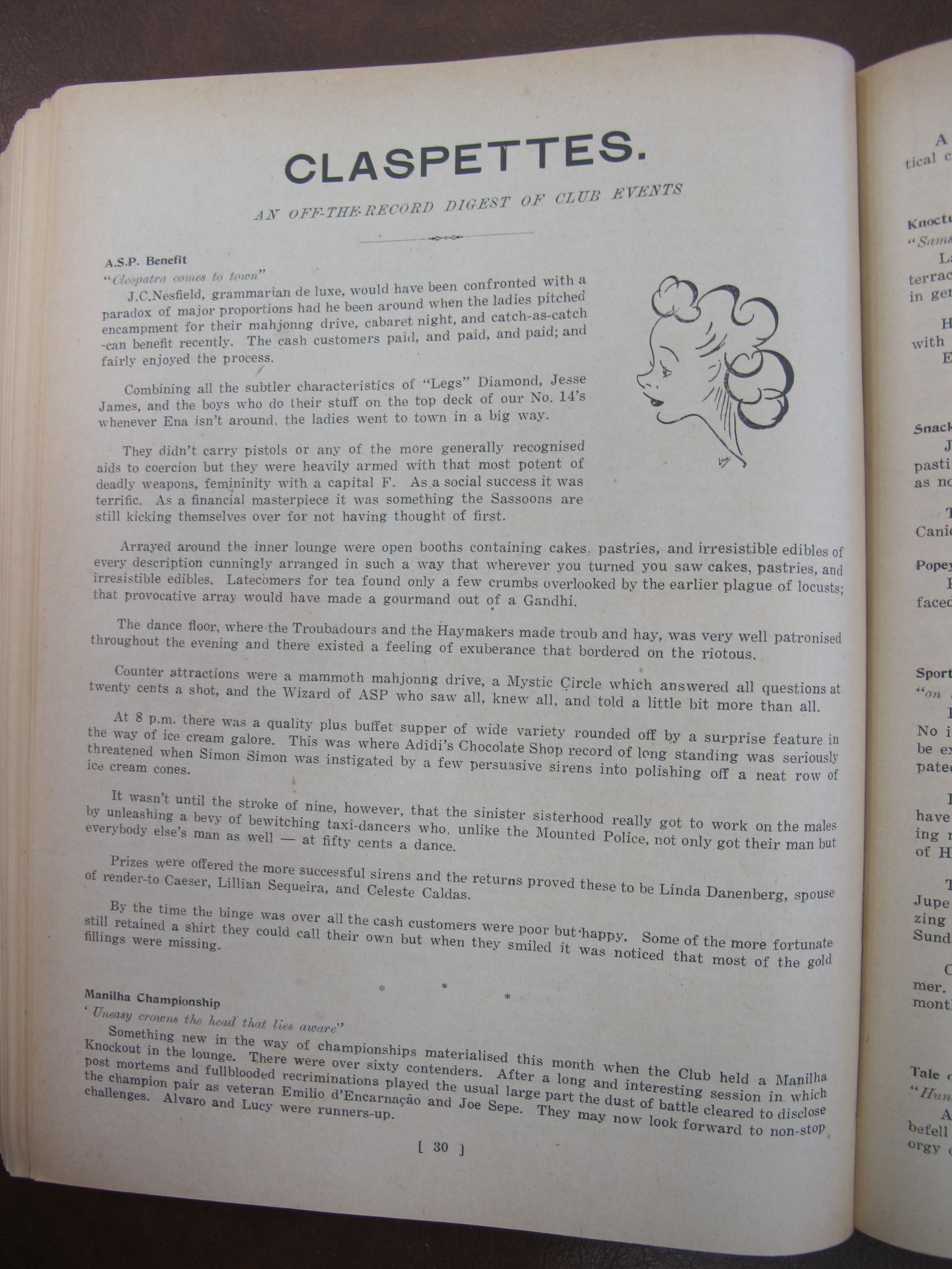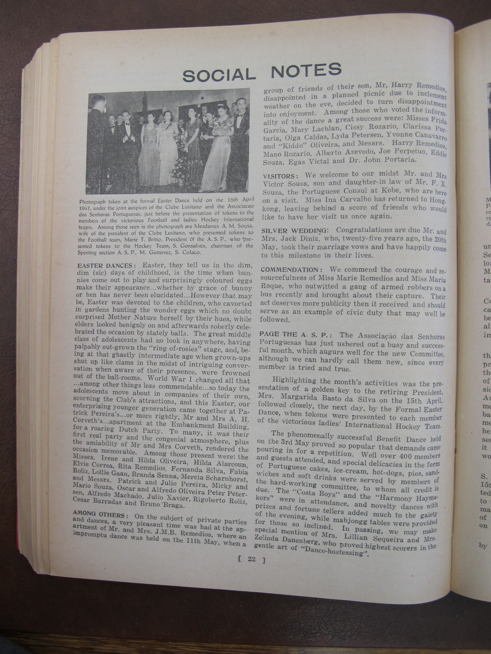 "Prudence" a play involving AC Danenberg, E Lopes, E Carneiro, F Danenberg, P Lobo, Alb. P Simoes, AC Remedios, [Mrs] Adelino Francisco de Paula Maria Diniz Jr, JA dos Remedios, Adelino Francisco de Paula Maria Diniz Jr, Hilda Maria Tavares Lubeck Lubeck, Marie d'Almeida, FP Britto, Moisés Maria Honorato Gutterres, CP Simoes, HH da Lubeck, Nellie d'Almeida, Terry Pereira, J Senna, VO Remedios, R Zouza, JM Remedios, E Sharnhorst, Carmen Lubeck, Tulia Canavarro, Emily Pereira, Miss Tere Silva, Elvie Remedios, Terezinha Diniz, Inez Lubeck, Noemi d'Almeida, Lily Souza, Maraguerite d'Almeida,
