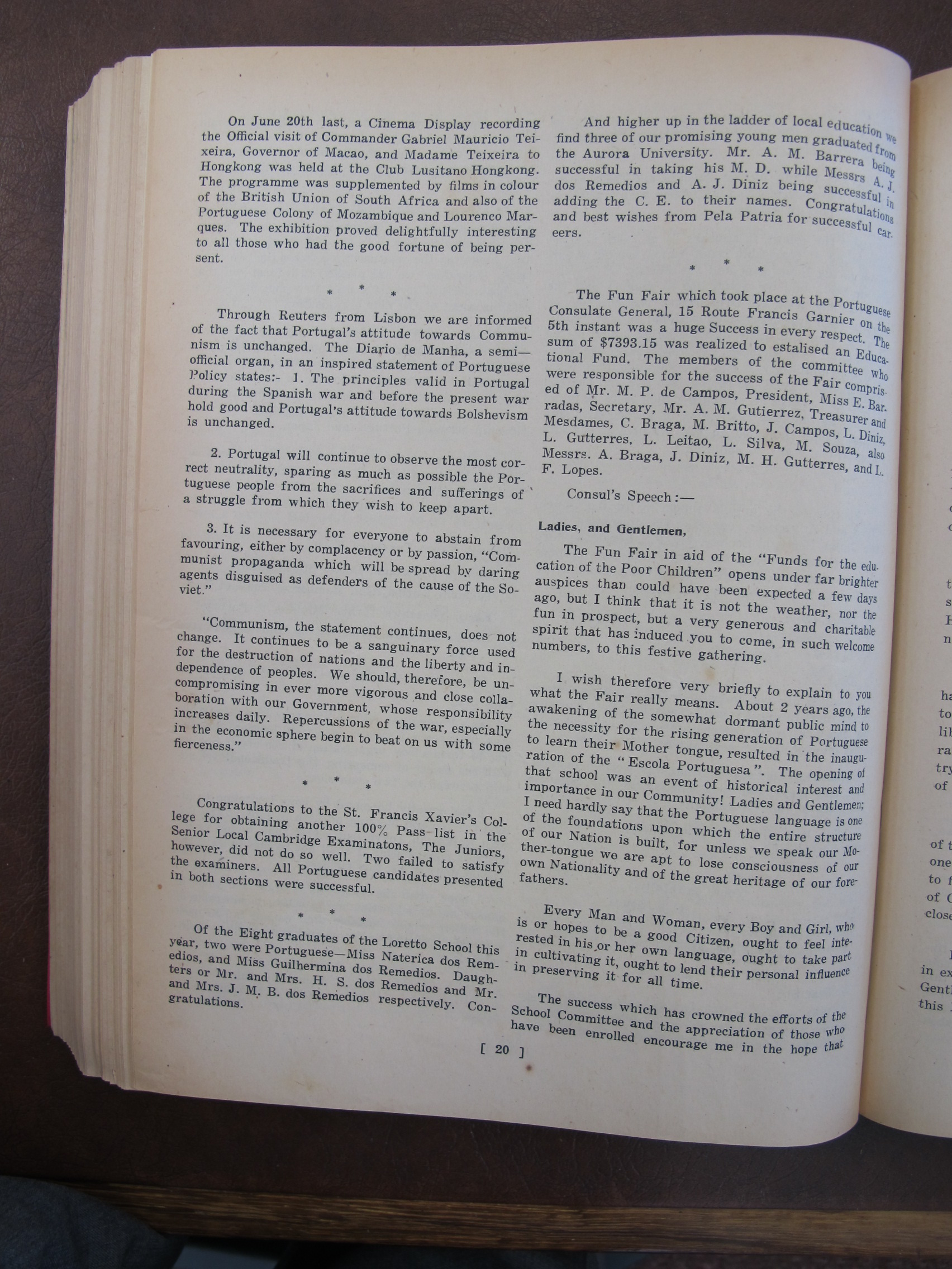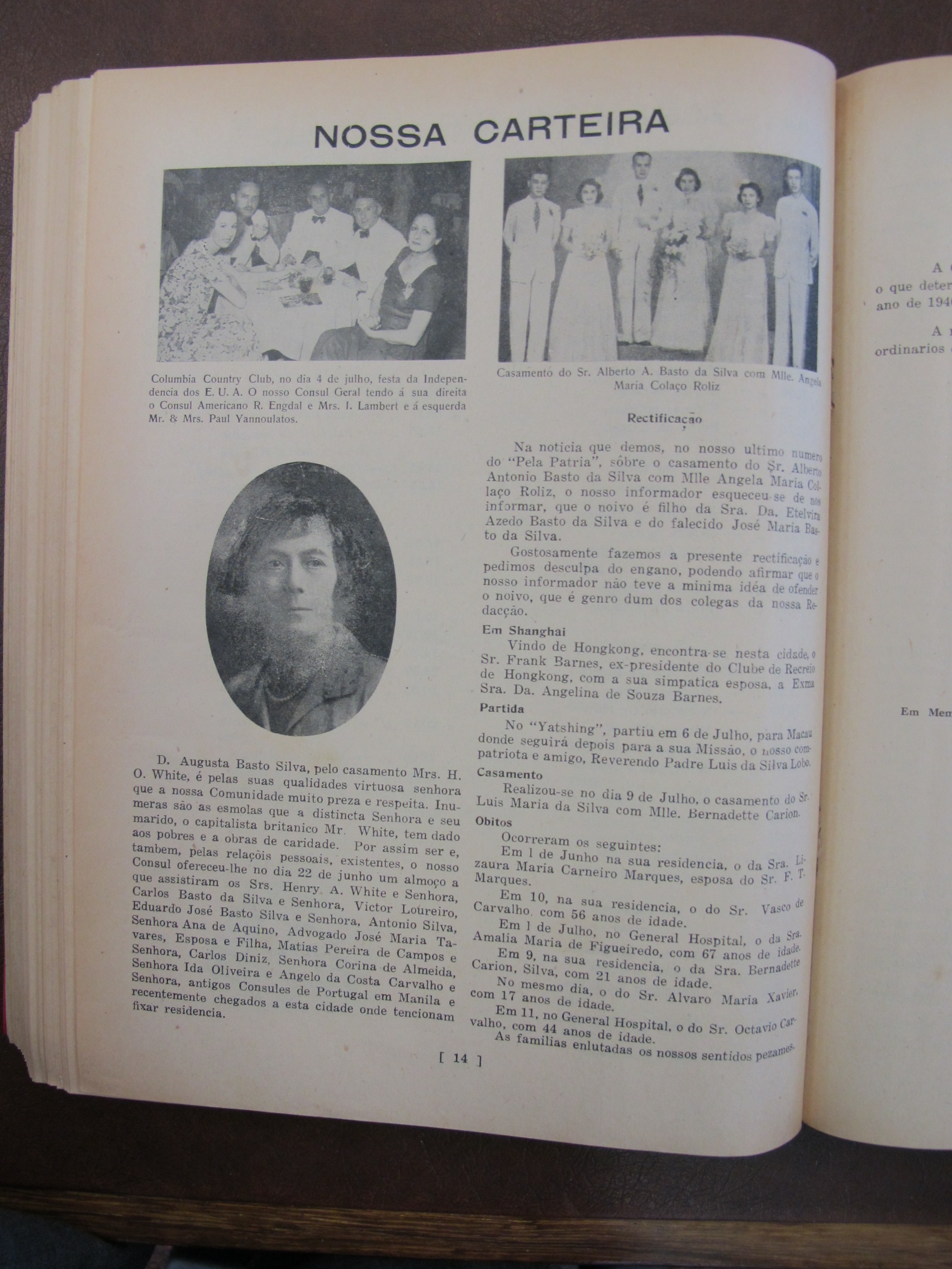 check spelling, Alvaro Eça, Mme Lebre e Lima, J Ribeiro e Melo [Portuguese Consul General], Flavia Sauer, Julia de Campos, RF Garcia, AD Denton, Julia Rivero, Dr Horst-Lange, José d'Encarnação, Nadia Diniz, [Esmalia] Ismália Amarante Morgado, Pansy Haas, F Solomon, Hilda Maria Tavares Lubeck Ozorio, Marie Diniz, Hilda Maria Tavares Lubeck Lubeck, Angelina Lopes, AC Costa, JC d'Aquino, Carlos Diniz, Isabel Diniz, Augusto Azevedo. Funeral of Lindamira Lopes, Augusto Azevedo; hospital expenses for Luisa Silva, Joao roza Pereira, Augusto Azevedo, C Cruz, Augusto Azevedo, Melita Simoes. Mentioning