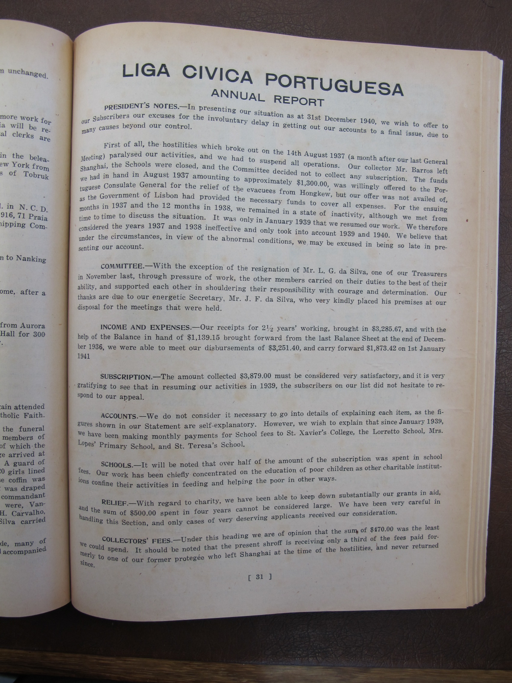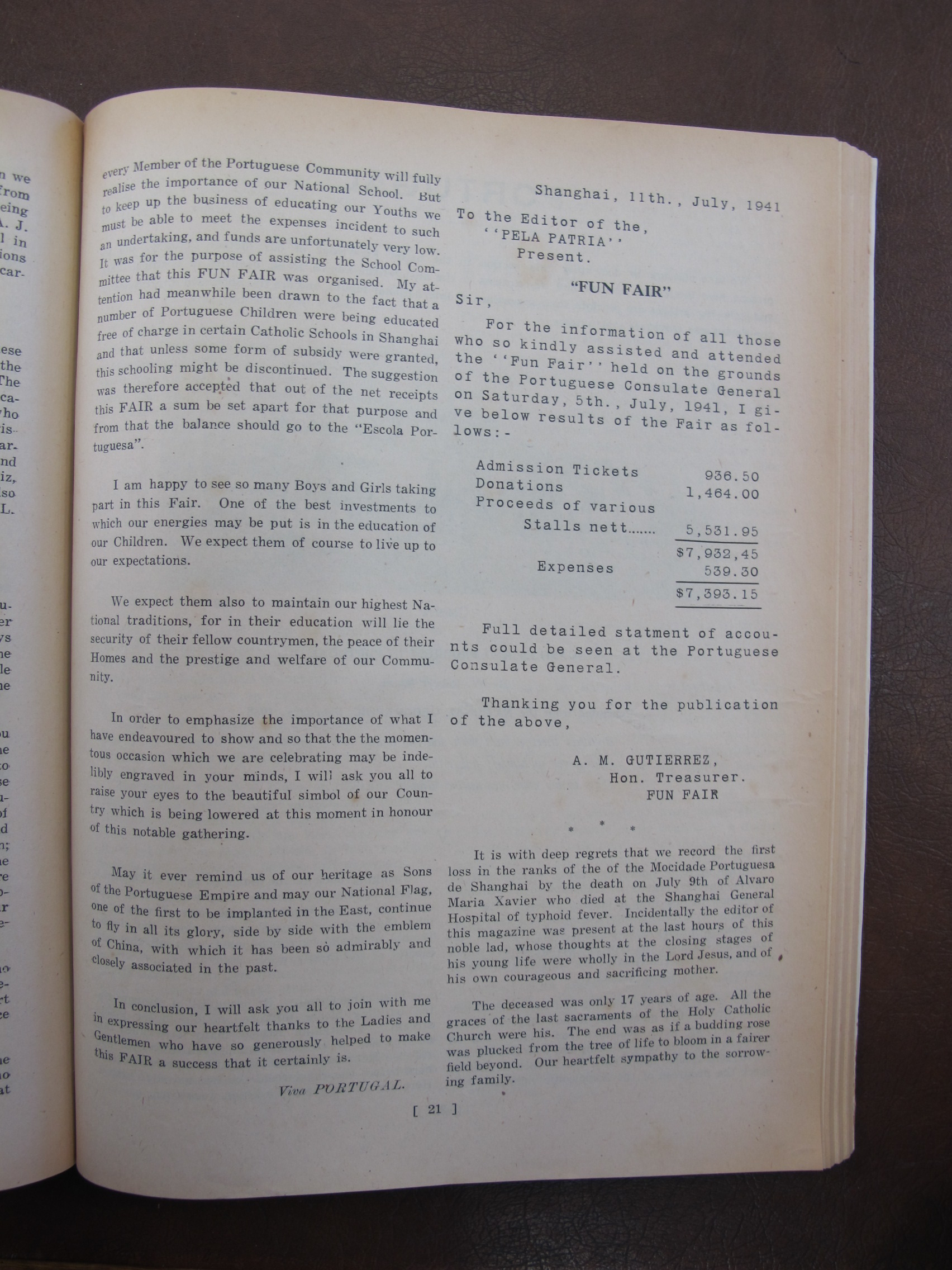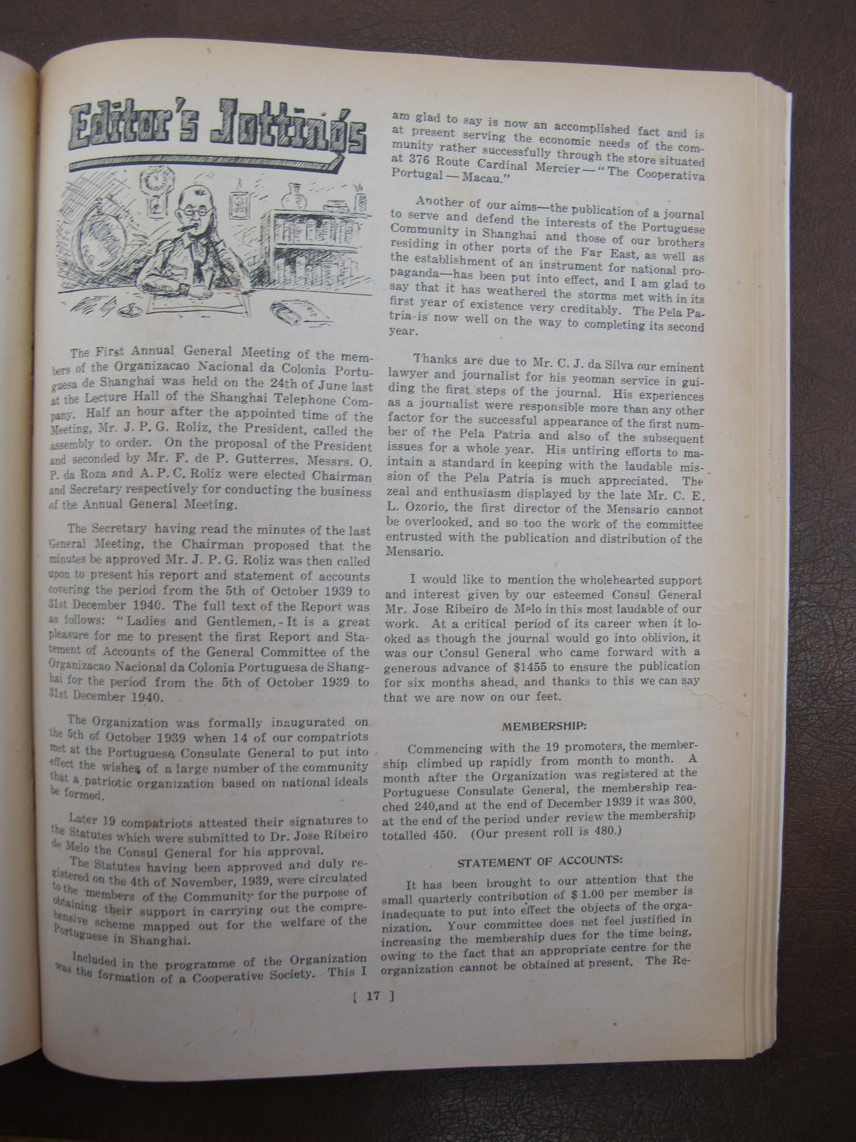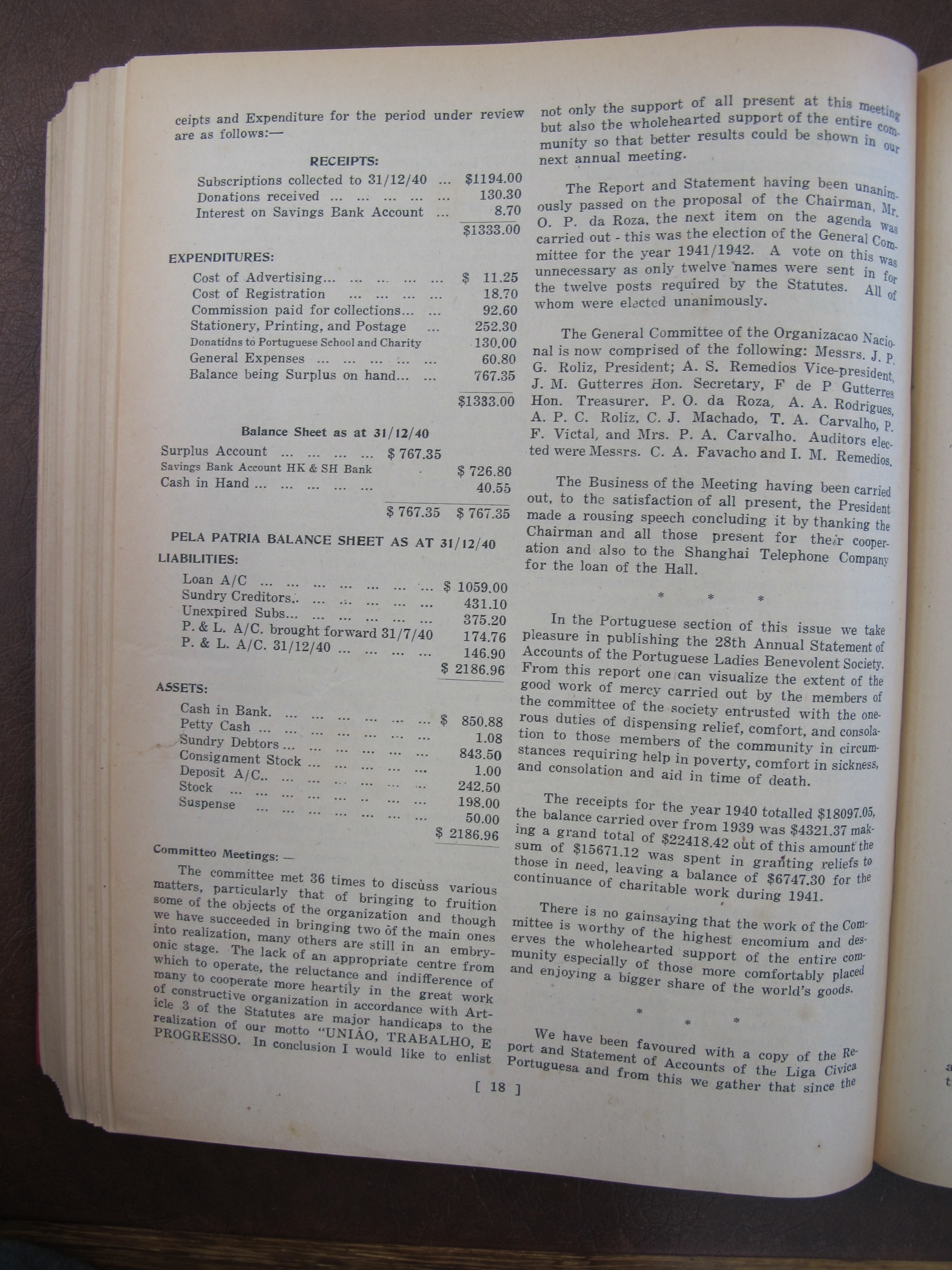 p16 Conta de Receita e Despeza de Associação Portugueza de Beneficencia de Shanghai de Janeiro até Dezembro 1940 (Receipts and Expenditure, Jan-Dec 1940) mentioning Dr Antonio P Diniz, Laura O Diniz, EA de Garacia, LF Lopes, Francisco Xavier da Silva e Souza, GJ Poulin, HM Holliday [